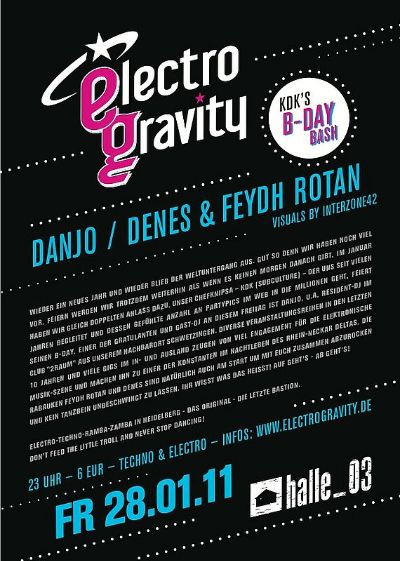 Freitag, 27.01.2012 electrogravity pres. KDK's B-Day @ Halle_03, Heidelberg
