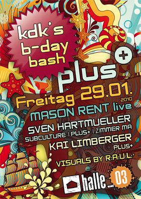 29.01.2010 – plus+ mit Mason Rent [live], Sven Hartmüller und Kai Limberger @ Halle_03, Heidelberg