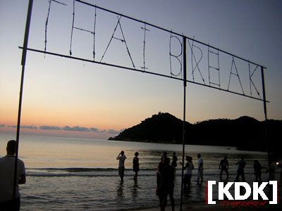 KDK: Thaibreak 2005: Thailand, Stand, 24-Stunden-Party, Sonnenaufgang, die Herren A., Tobi N. und Ricardo V. auf dem Hosenboden sitzend vor den Turntables. Göttlich. Szenenkomik, wie man so schon sagt! (Eigentlich schwer direkt zu beschreiben, aber die Leute, die wissen welches ich meine, können mir mit Garantie beipflichten.)